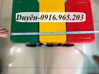 - Thùng rác đạp chân 3 ngăn 60l phân loại rác thải ngay tại nguồn, nhỏ gọn, tiện lợi, thường được sử dụng trong văn phòng, công viên, hành lang, chung cư,...có đạp chân, không làm bẩn tay người dùng